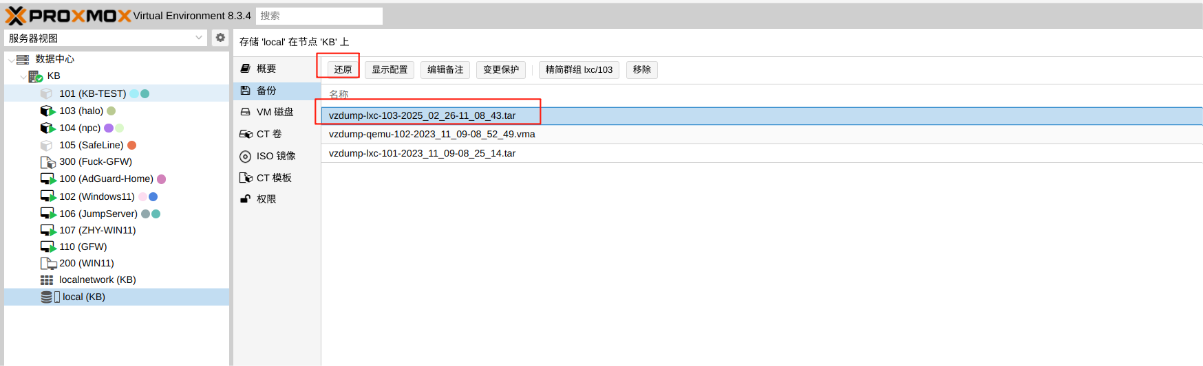 6、还原后记得删除原虚拟机,否则同一局域网中,如果PVE重启后,虚拟机自动启动会导致IP冲突!!!